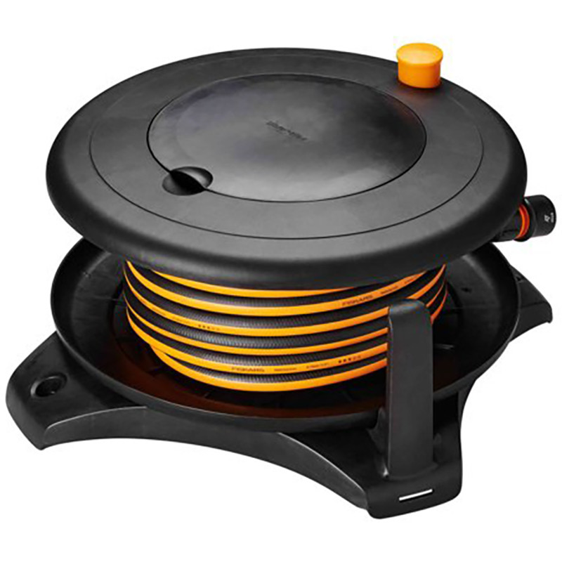 Fiskars Solid™ Waterwheel L — это надёжная и удобная система для полива, оснащённая 30-метровым шлангом, идеально подходящая для среднего и большого сада. Благодаря горизонтальной конструкции и встроенному механизму намотки, использование и хранение шланга становится максимально простым. Компактный и устойчивый корпус с поворотной базой позволяет удобно работать в разных направлениях, а комплект подключения делает устройство готовым к немедленному использованию.